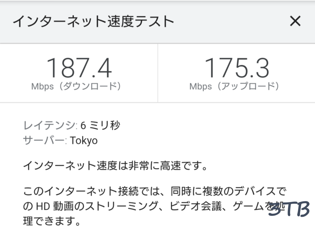ダウンロード・アップロード共に申し分のない高速スピード。接続が途切れることもなく安定しているため、テレワークにも向いています。